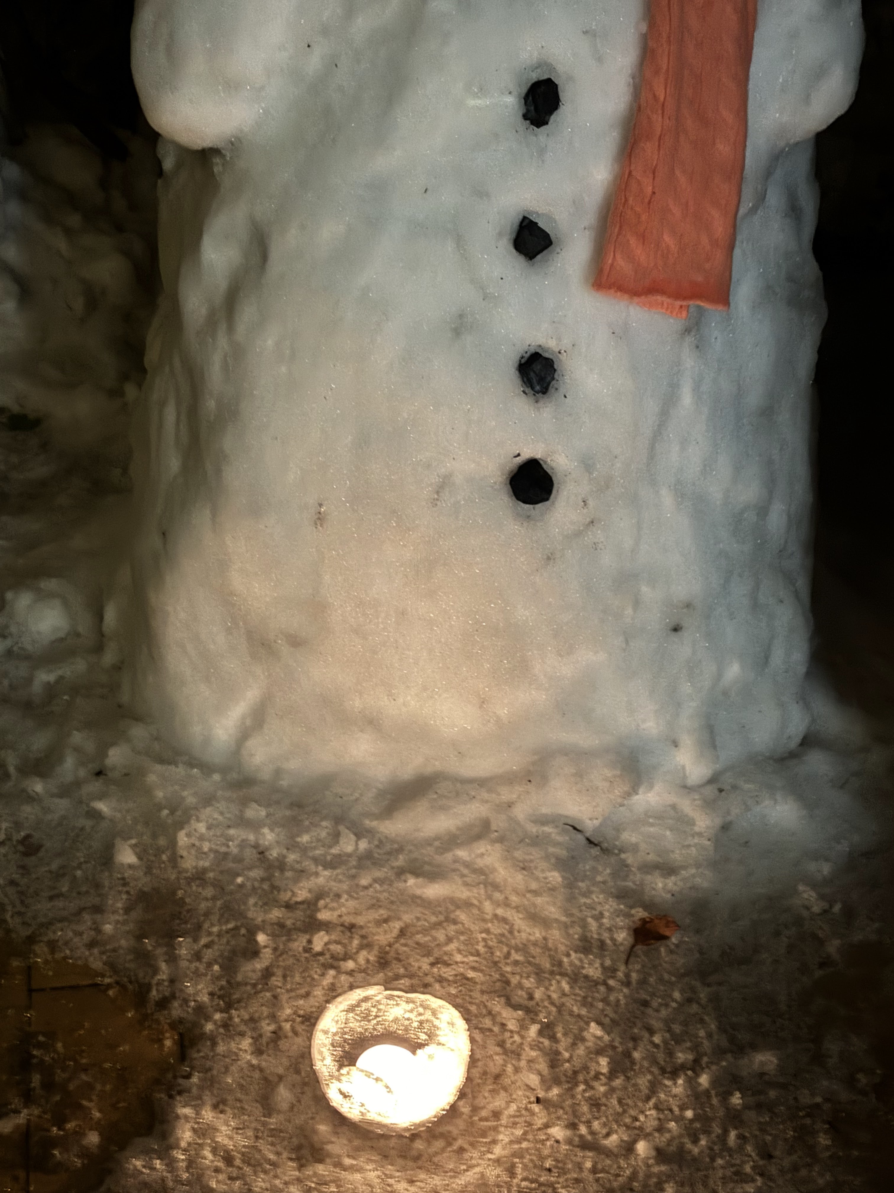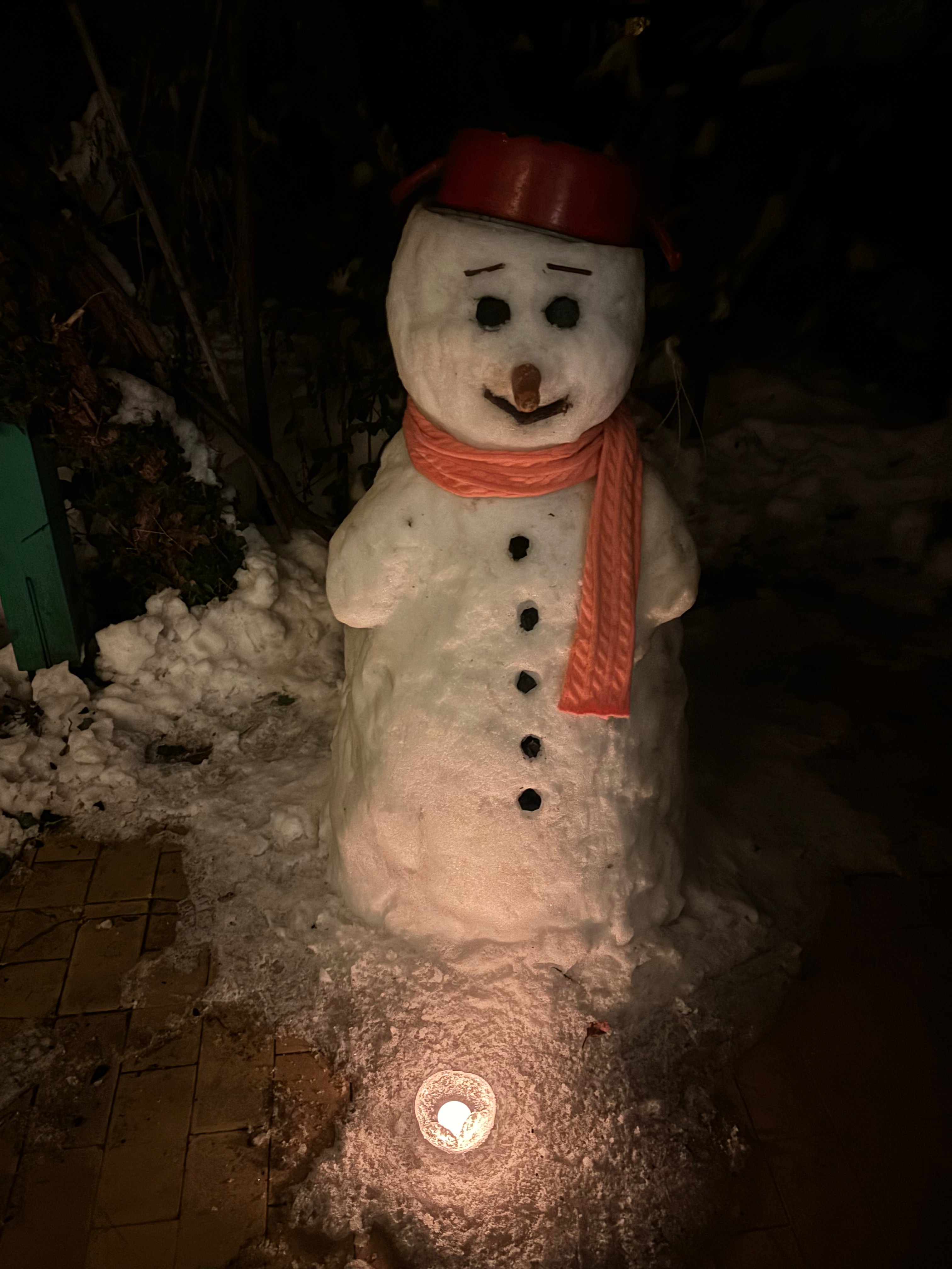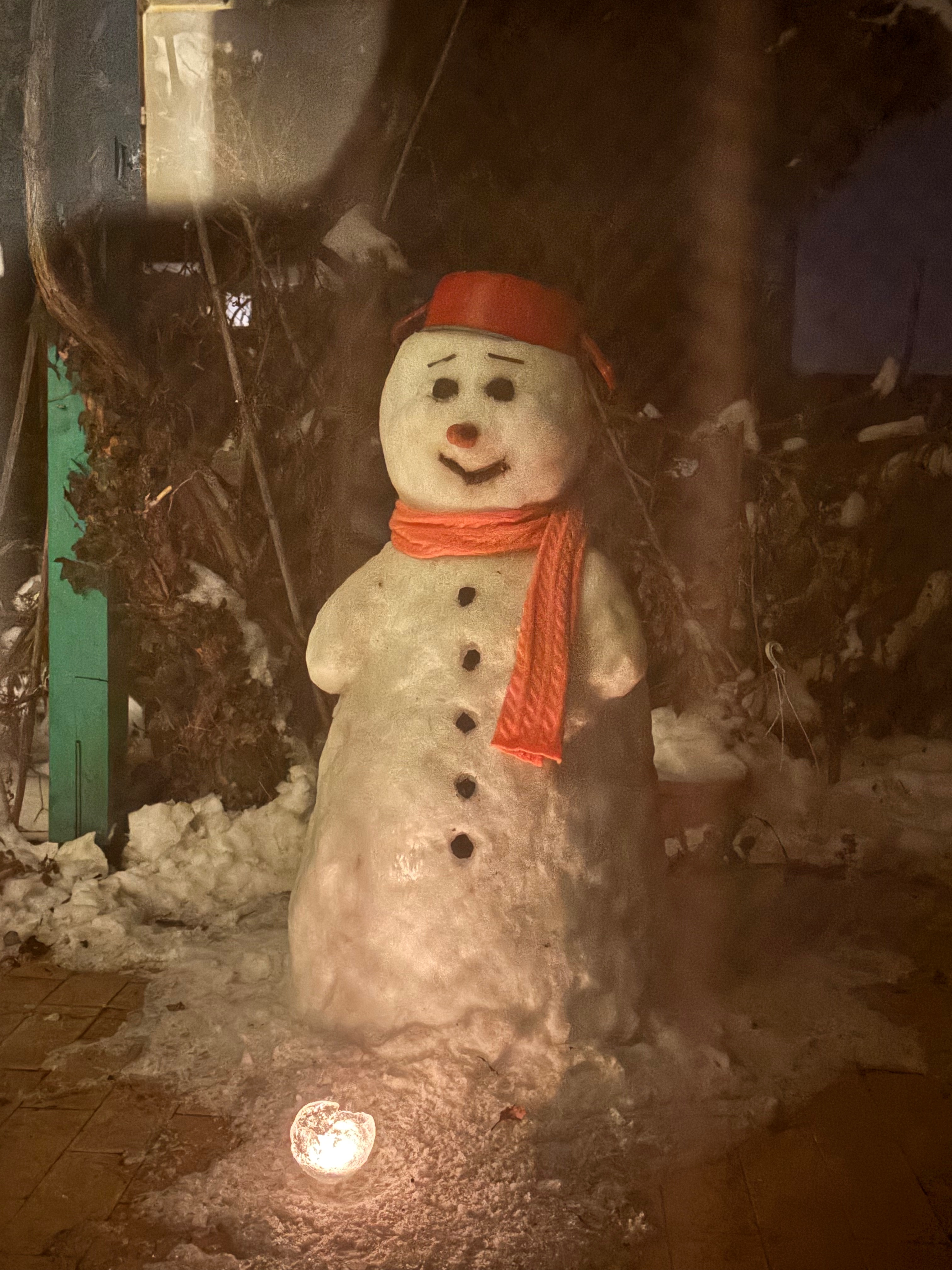 Ha elég nagy a fagy, természetesen Magyarországon is lehetséges jéglámpás készítése. Mi a lufis módszerrel gyártottunk néhányat. Az egyikre épp a hóember vigyáz.